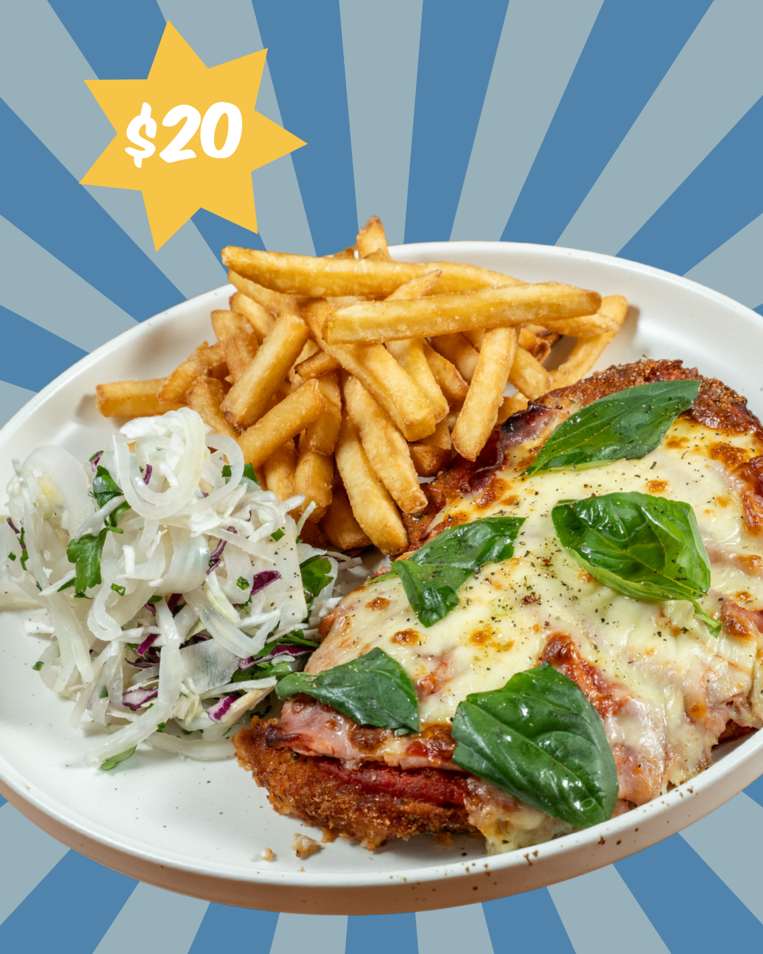 Parmi night is a midweek must at General Public! Every Wednesday from 5pm, dig into a delicious chicken parmi with chips and salad for just $20