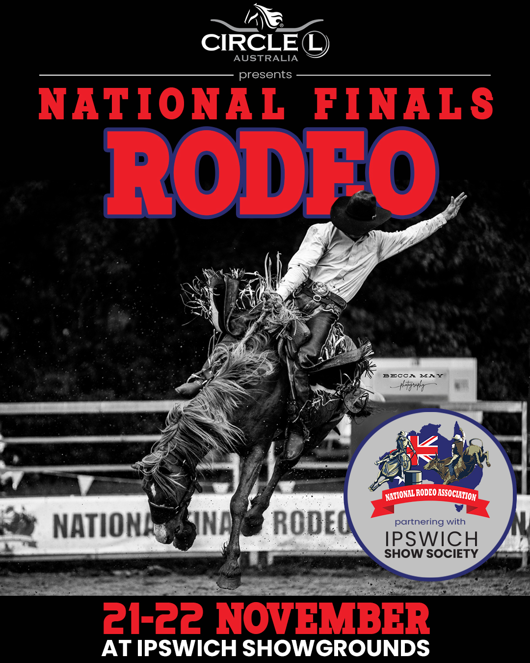 The Ipswich Show Society is proud to welcome the Circle L Australia 2025 National Finals Rodeo to the Ipswich Showgrounds this November, in partnership with the National Rodeo Association. This is the pinnacle event of the rodeo season, with three action-packed rounds taking place over two huge days – Friday 21 and Saturday 22 November 2025.