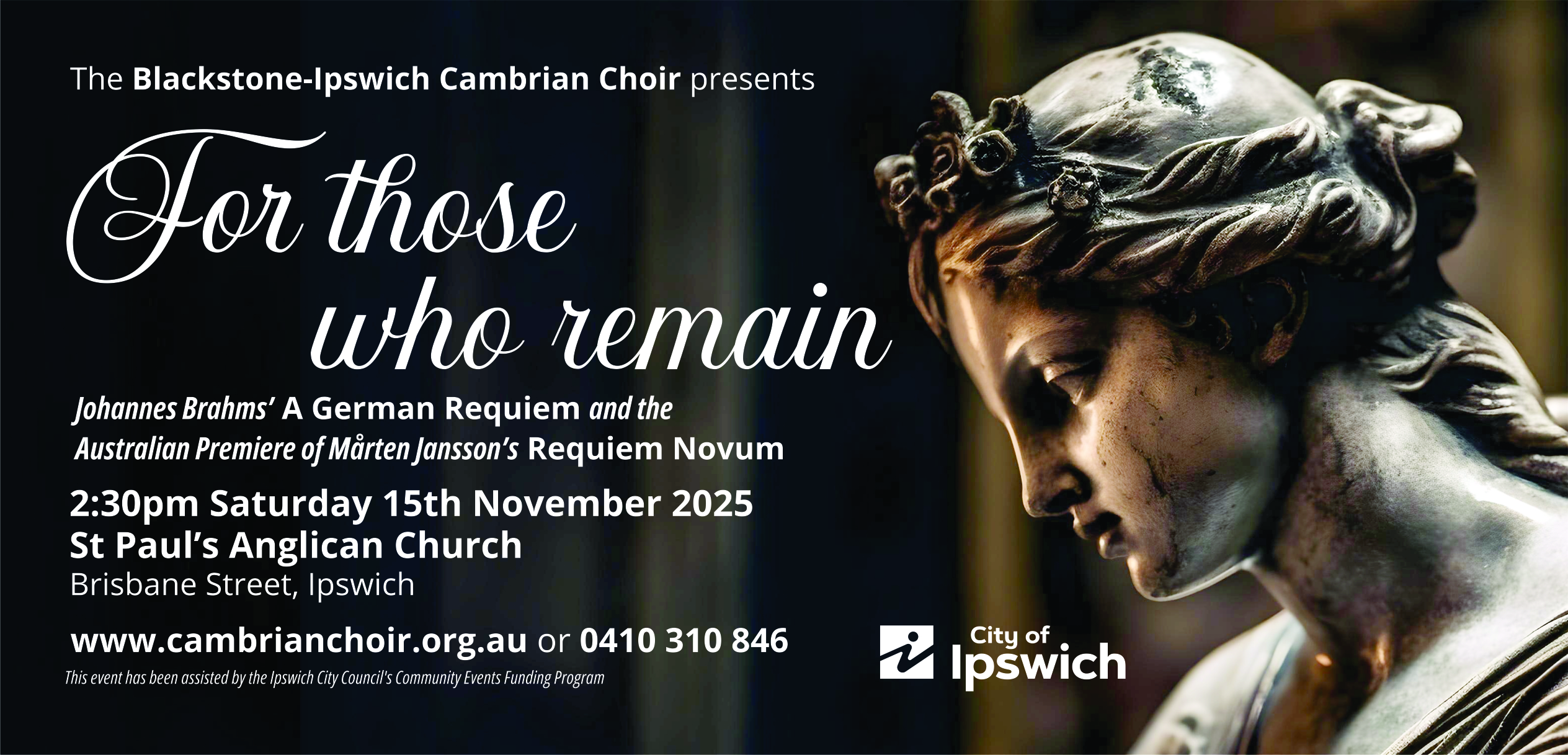 Much of the world’s most stunning music comes from places of love and loss. For its last concert of 2025, the Blackstone-Ipswich Cambrian Choir presents two such works, composed a century and a half apart, which both speak to us today on themes of grief, consolation, and the transition from sorrow to peace.