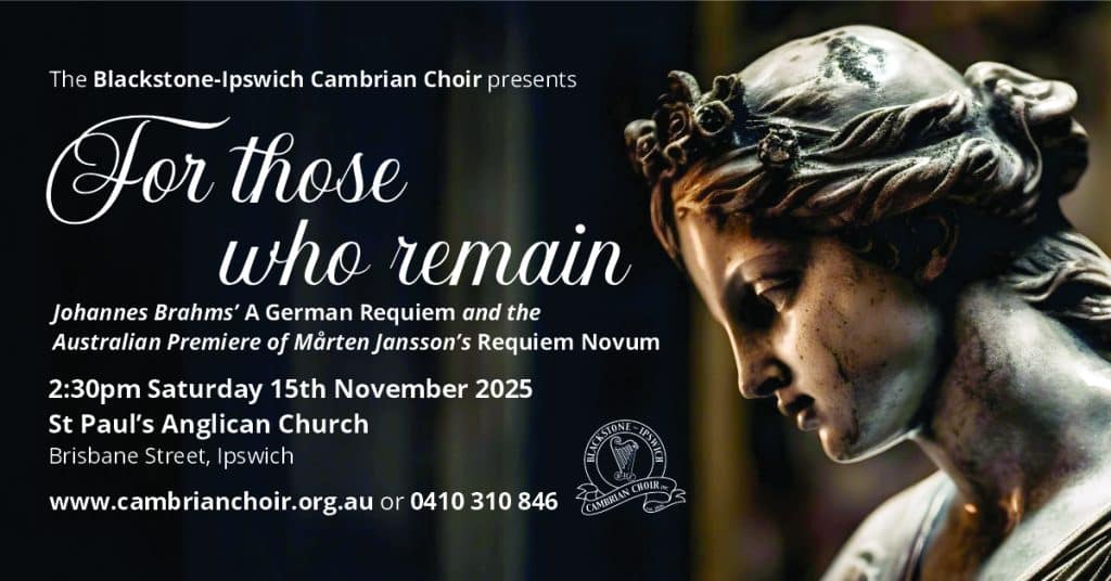 Much of the world’s most stunning music comes from places of love and loss. For its last concert of 2025, the Blackstone-Ipswich Cambrian Choir presents two such works, composed a century and a half apart, which both speak to us today on themes of grief, consolation, and the transition from sorrow to peace.