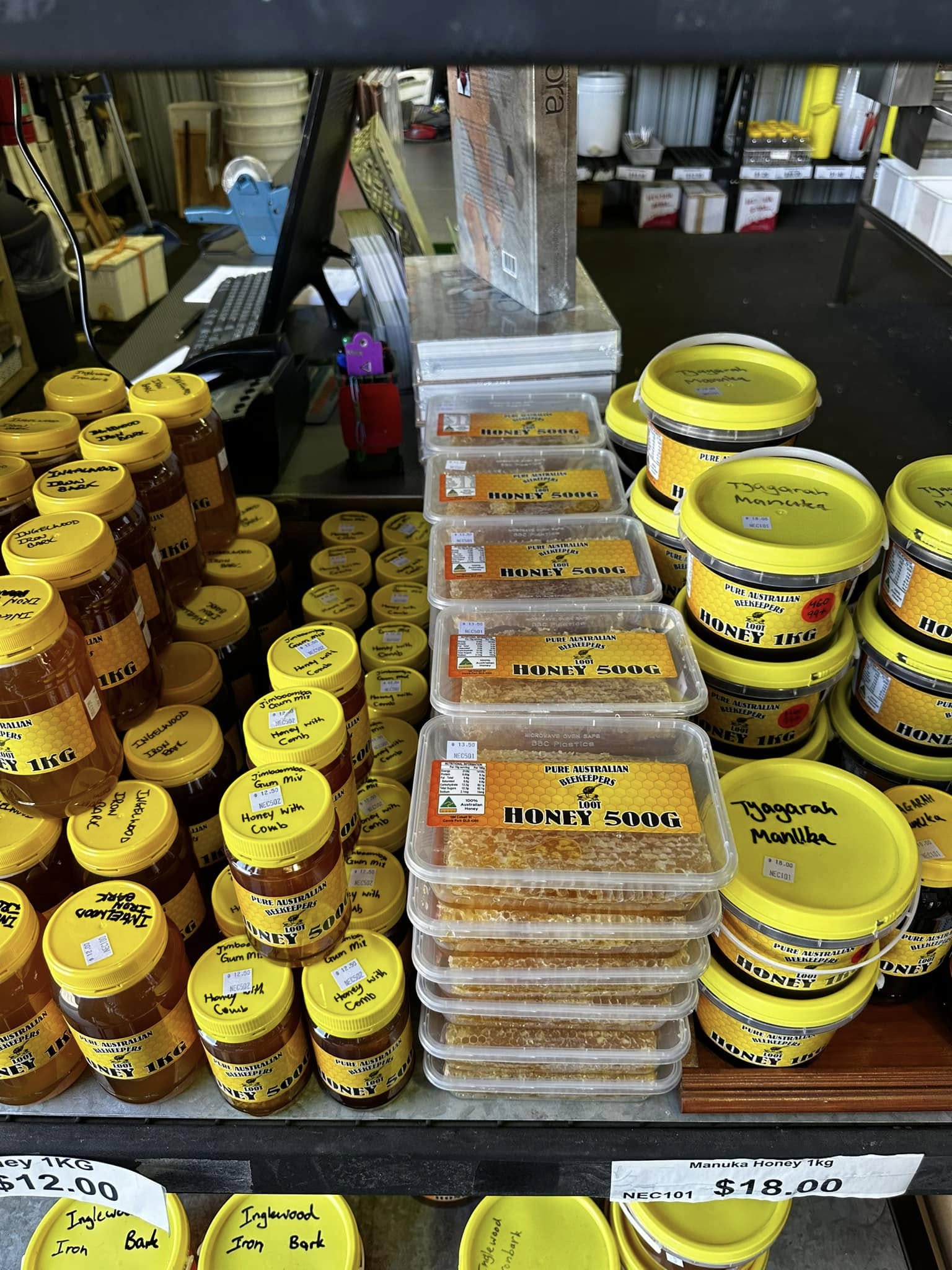 Australian Manuka honey available to taste and buy along with a full range of gooey varieties