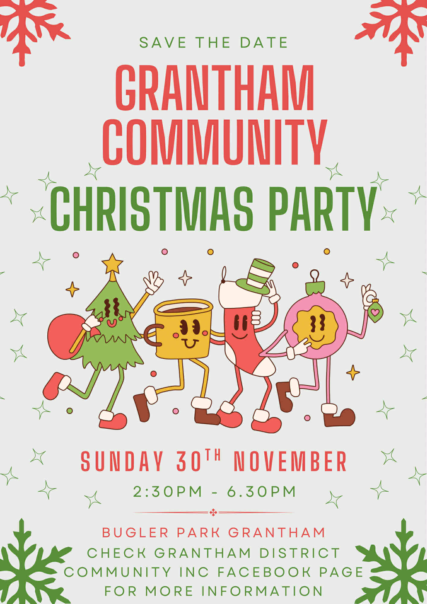 Grantham Community Christmas Festival Local stalls, local entertainment, local family fun Tags: Christmasfestival, communitychristmas, GranthamChristmas, localchristmas Back to Community Events Advertisement Date Nov 30 2025 Expired! Time 2:30 pm - 6:30 pm Location Grantham Community Christmas Festival Bugler Park , Grantham Organiser Grantham District Community Inc Phone Details on our Facebook page Grantham District Community Inc
