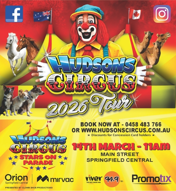 The parade kicks off at Main Street (KFC end), winds up Main Street, Orion Shopping Centre, finishing at Hudson’s Circus Big Top on Sirius Drive.