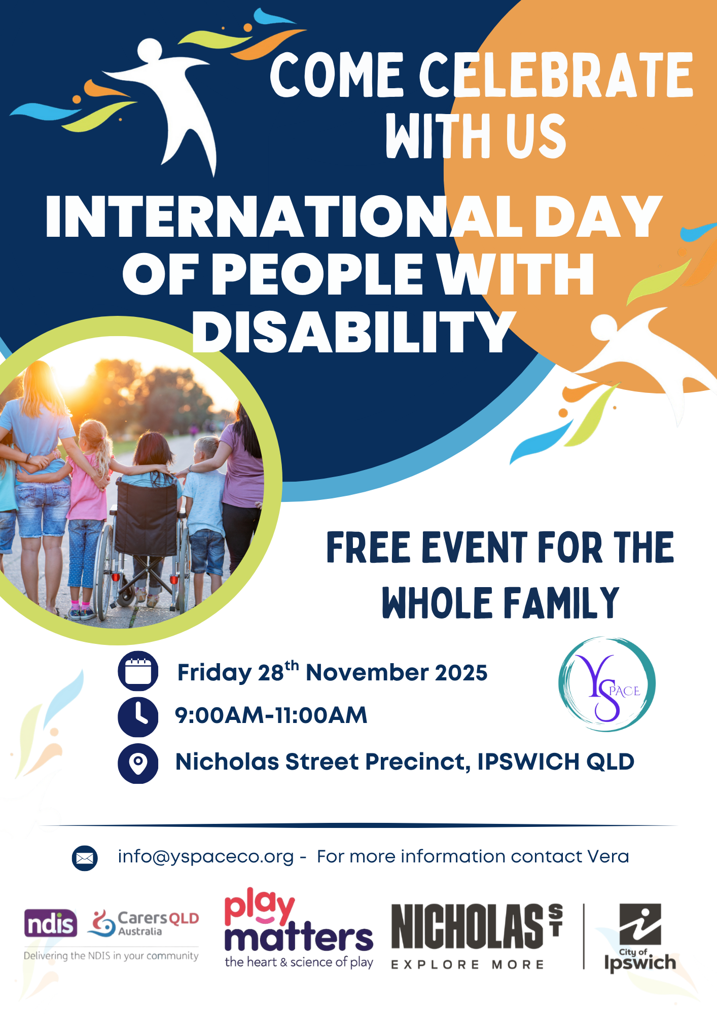 We’re so excited to once again come together for the 2025 International Day of People with Disability Celebration happening Friday, 28th November 2025 from 9am to 11am at Tulmur Place, Ipswich.