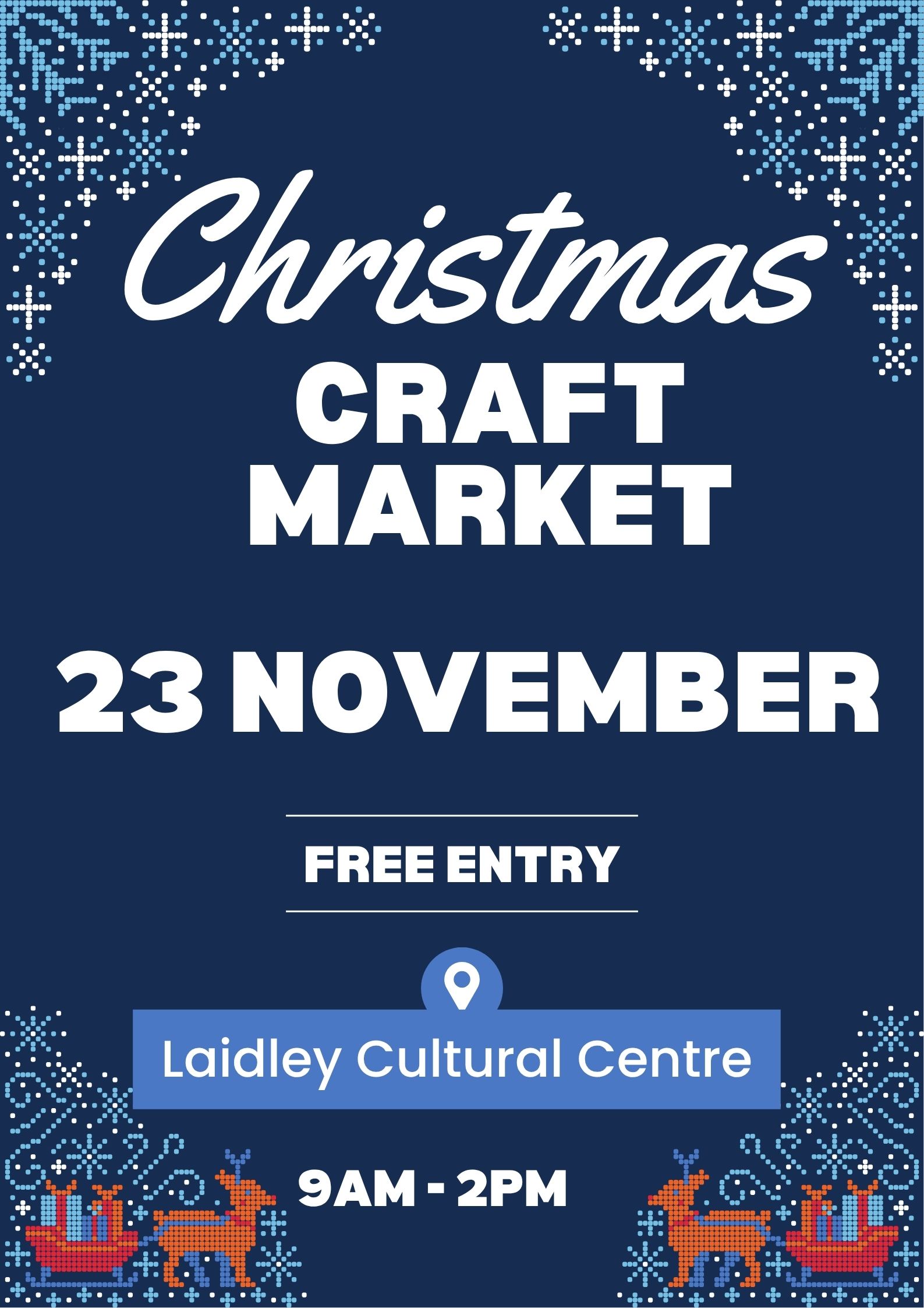 There are 40 Christmas Craft Stalls, food trucks and coffee. Santa is going to come along between 11am and 2pm and we have face painting. You can have your photo taken with Santa and face painting for a gold coin donation. 100% of proceeds going to the Starlight Childrens Foundation.