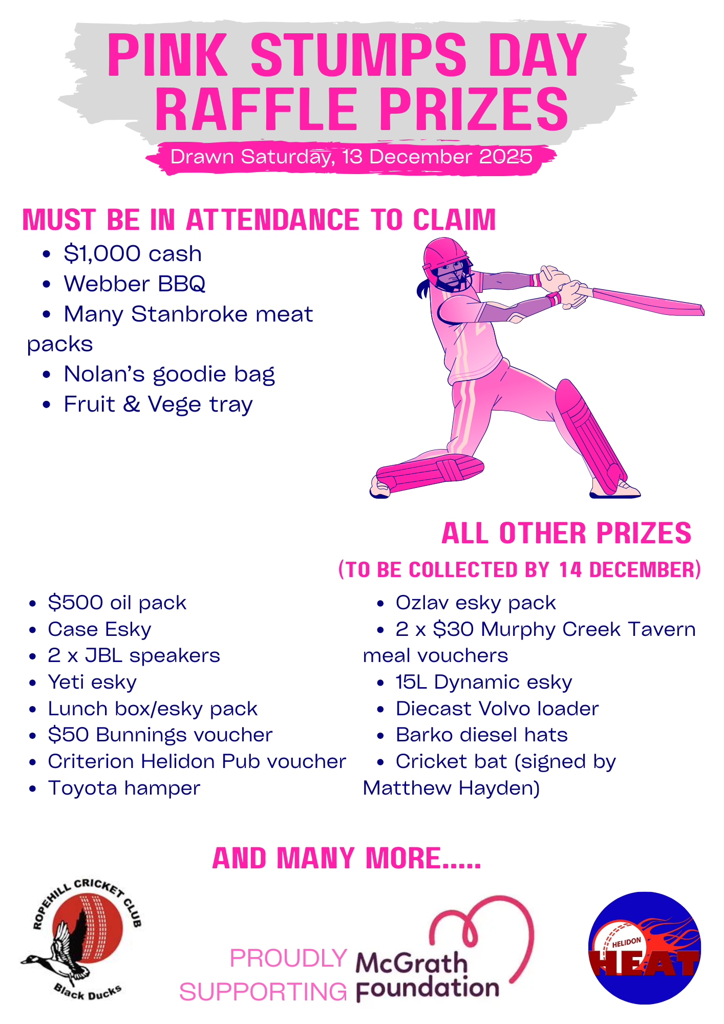 Pink Stumps Day is supporting the McGrath Foundation, providing support to those people and families impacted by cancer (all cancers).