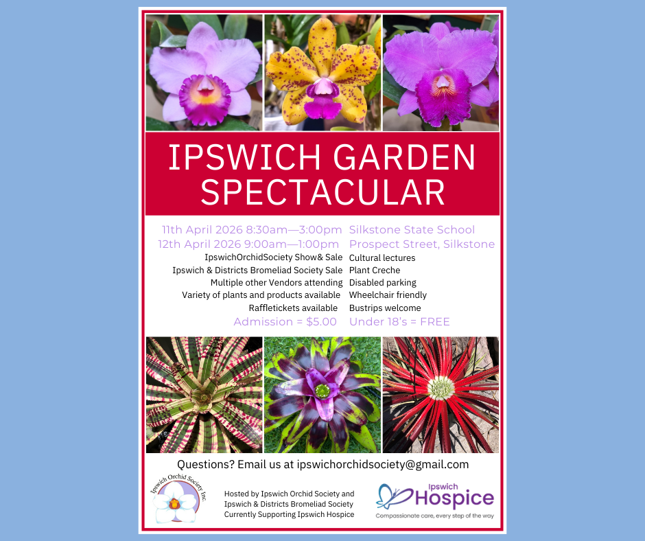 The Ipswich Garden Spectacular is returning on Saturday 11 and Sunday 12 April at Silkstone State School, bringing together plant lovers, gardeners and the local community for a fantastic weekend of all things green. Visitors can enjoy stunning displays of orchids and bromeliads, browse a wide range of plants and gardening stalls, and pick up expert tips from experienced growers. Whether you’re a seasoned gardener or just love a beautiful garden, it’s a great opportunity to find inspiration, learn something new and take home a special plant.