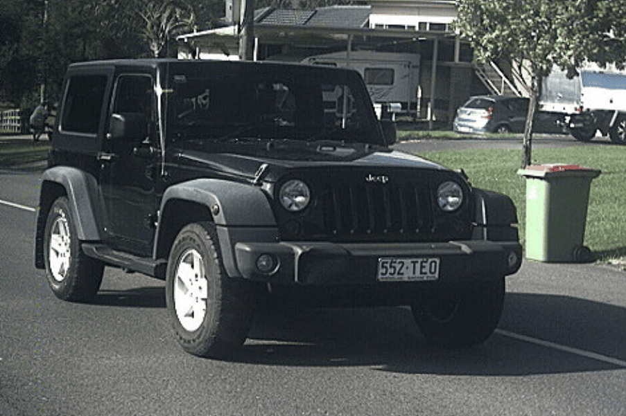 Patrick is described as Caucasian in appearance with dark brown hair and dark eyes. Officers believe he may be travelling in a black Jeep Wrangler (pictured below) with Queensland registration 5-5-2 T-E-O.